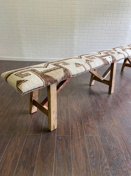 Indulge in the perfect fusion of vintage rug charm and contemporary design with our Handcrafted Upholstery line. Featuring a variety of stools, benches, and ottomans in all sizes, our process uniquely pairs new designs with the perfect rugs for a truly distinctive look. Each handcrafted bench highlights the natural beauty of exposed wood, making it a one-of-a-kind addition to any space. Need a customized ottoman? Just send us an email and we'll help you find the perfect piece for your needs.